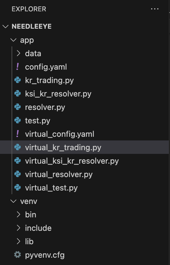 주식 자동 매매 프로그램을 위한 프로젝트 폴더를 [needleeye]로 생성했다고 지난 포스트에서 말씀드렸습니다.