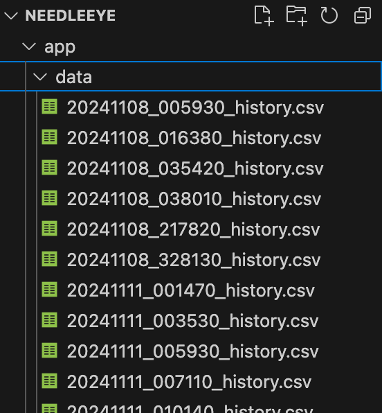 ▼ [data] 폴더를 펼치면 이렇게 종목별 시계열 데이터가 좌르르